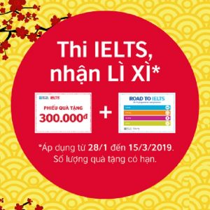 Đăng ký thi IELTS nhận ngay LÌ XÌ, bao gồm một phiếu quà tặng 300.000 VNĐ và